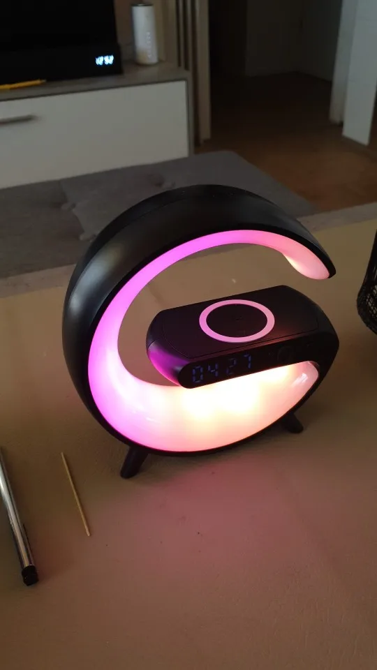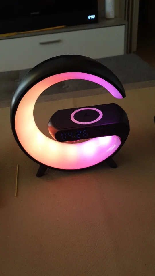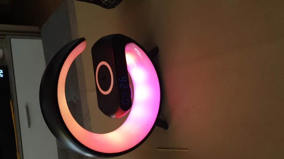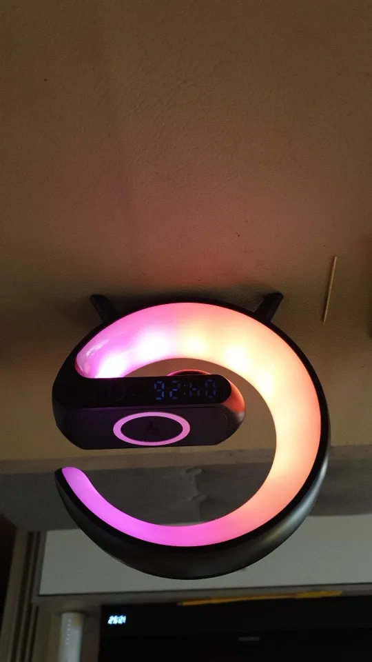 Function description: 15W Fast wireless charging, atmosphere lamp, bedside lamp, dazzling light effect, Bluetooth audio, speaker play and Aux , TF ,Time, Alarm Clock mode.